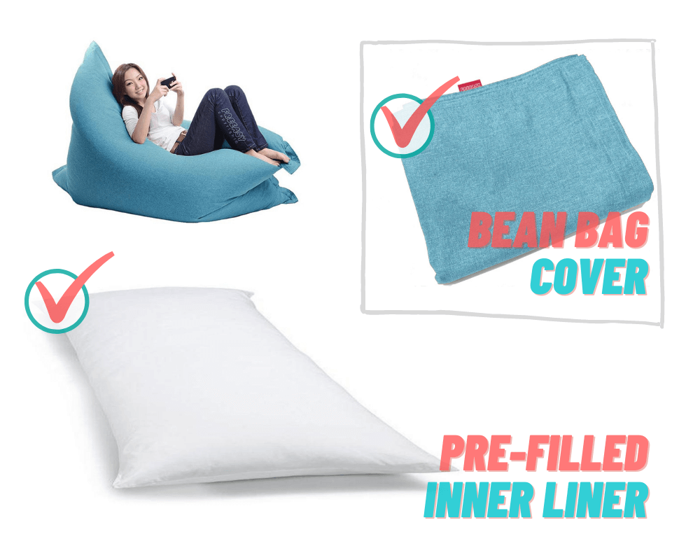Sarung pundi kacang boleh dibasuh diperbuat daripada Poliester.