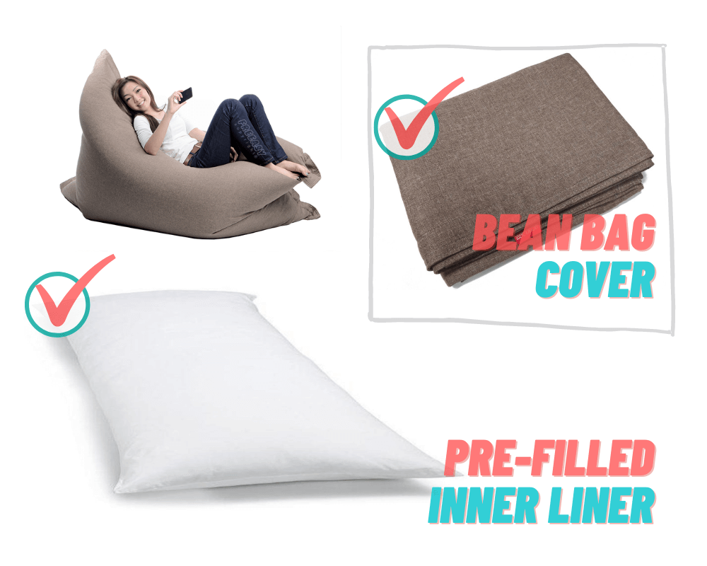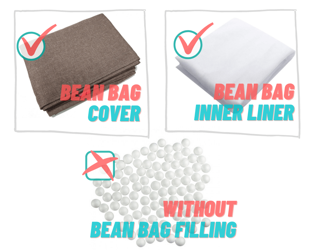 Sarung pundi kacang boleh dibasuh diperbuat daripada Poliester.