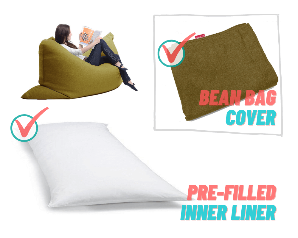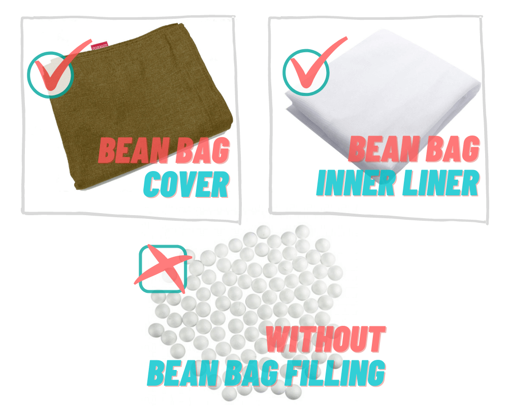 Sarung pundi kacang boleh dibasuh diperbuat daripada Poliester.
