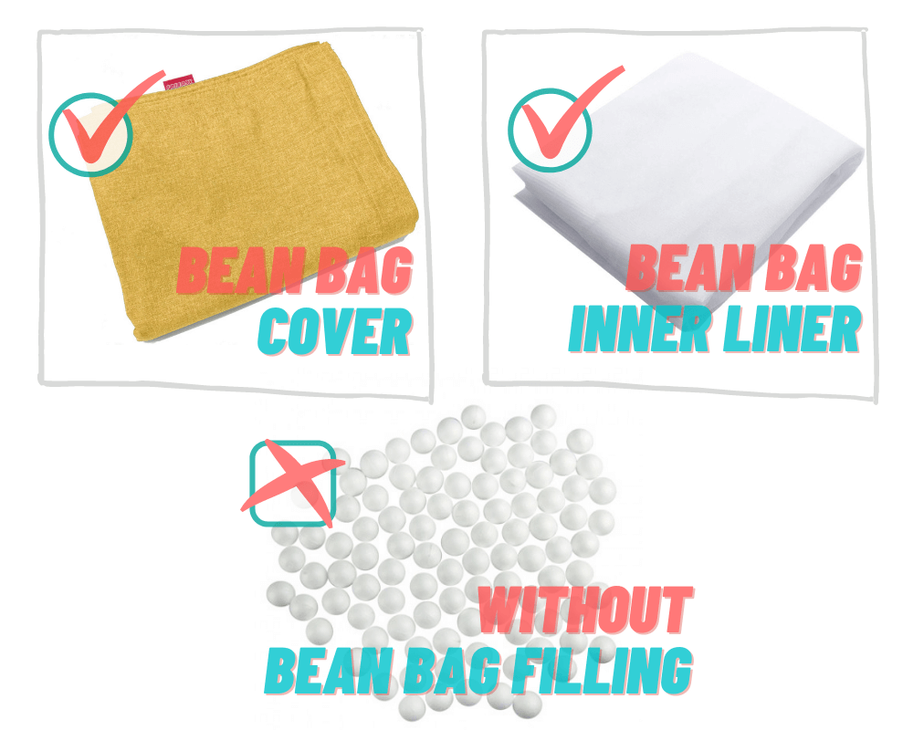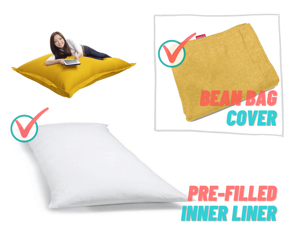 Sarung pundi kacang boleh dibasuh diperbuat daripada Poliester.