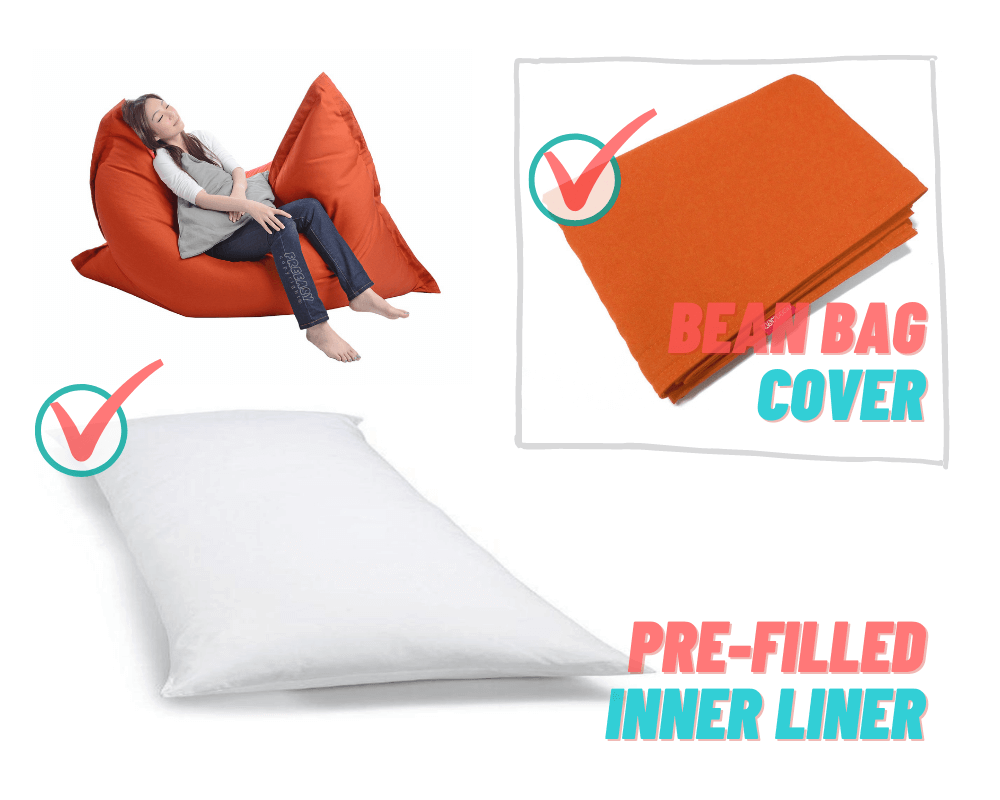 Sarung pundi kacang boleh dibasuh diperbuat daripada Poliester.