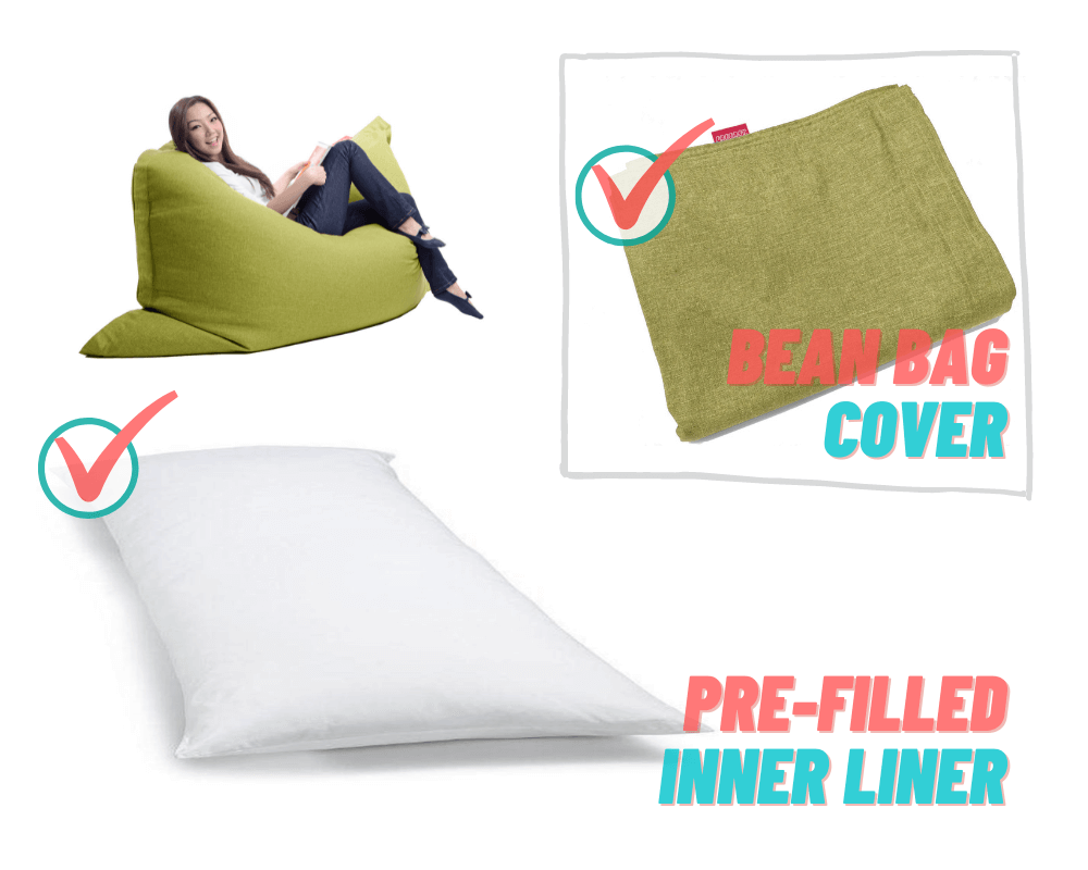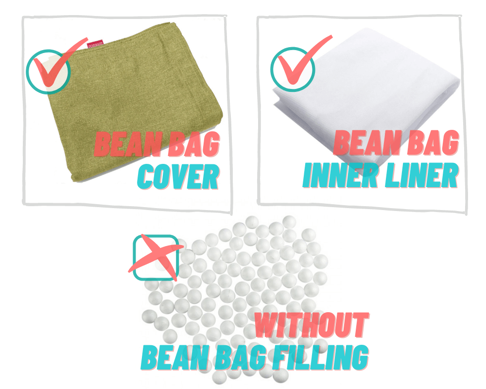 Sarung pundi kacang boleh dibasuh diperbuat daripada Poliester.